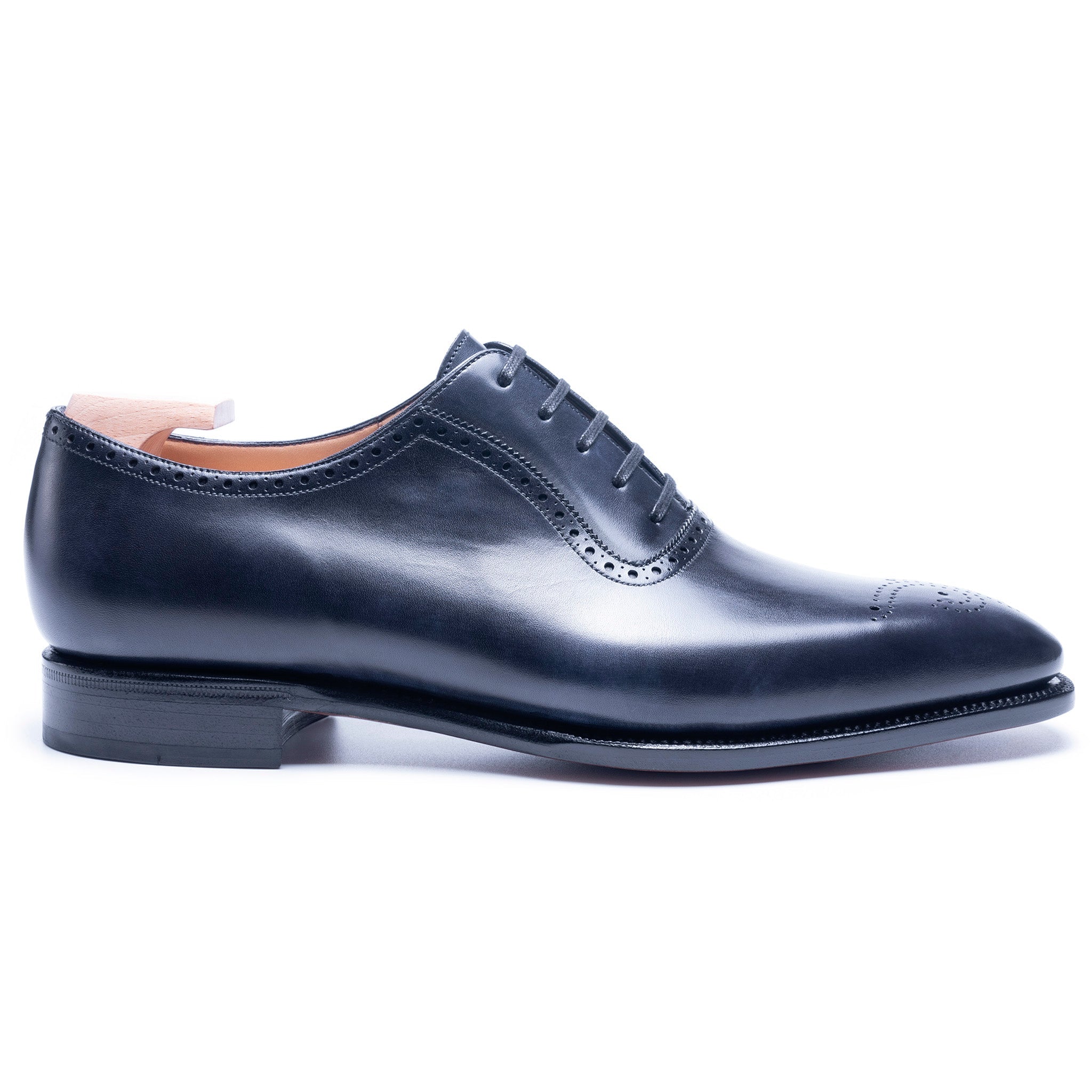 Leonardo Prime: Sleek Navy Leather Wholecut Brogue Detailing Oxford Formal Shoes