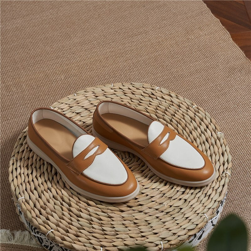 Penny Loafer – Two-Tone White & Tan with Rubber Sole